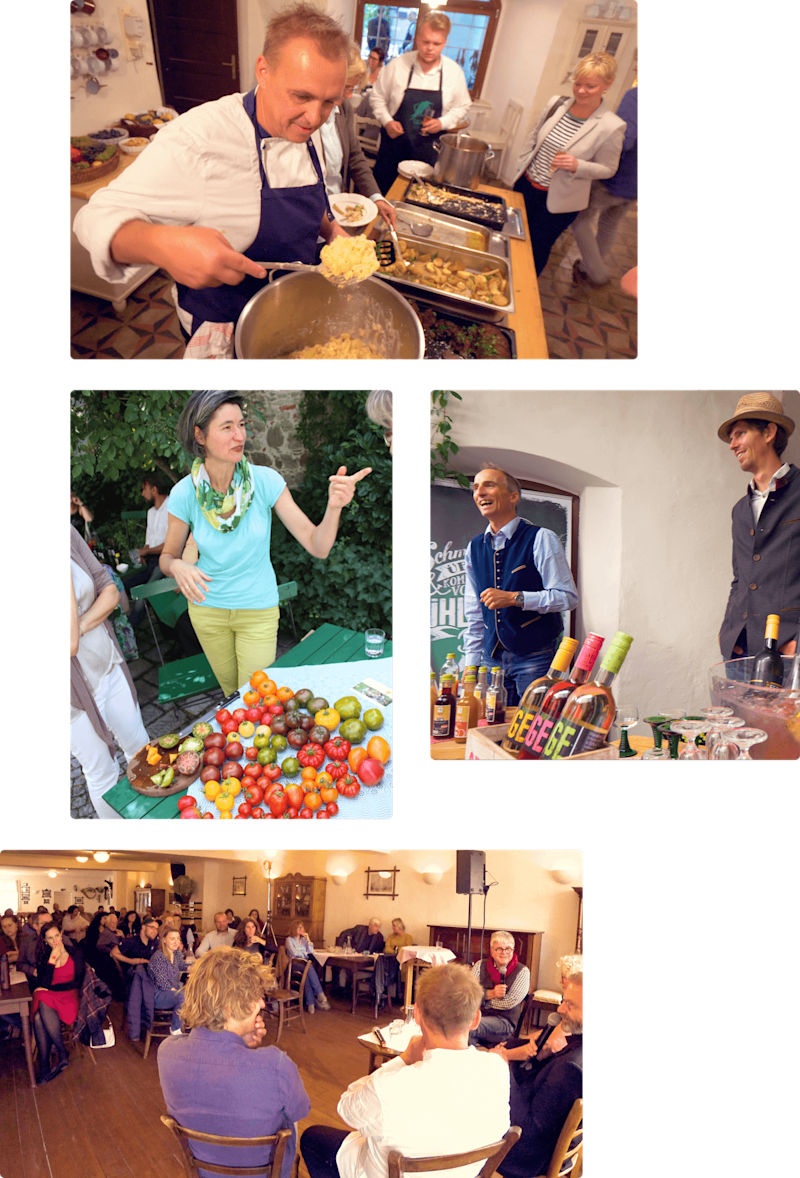 Während der gesamten Veranstaltung stehen im ConSenso frisch zubereitete Speisen und ausgesuchte Getränke zur Verfügung. Diese ganztägige Verpflegung ist im Eintrittspreis inkludiert. Für das leibliche Wohl sorgen an beiden Tagen Schüler*innen der HBLA Elmberg sowie Schüler*innen der Tourismusschulen Bad Leonfelden unter der Leitung von Haubenkoch Mag. Stefan Eder. Kostproben ausgewählter Produzent*innen:
